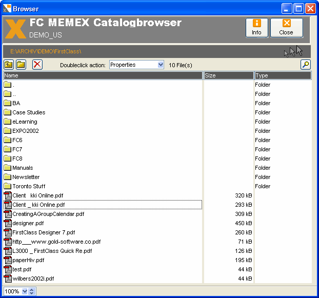 But not only downloading of documents is available in FC MEMEXTM . Using the FC MEMEXTM browser users can browse, organize and upload data directly into the FC MEMEXTM document servers.